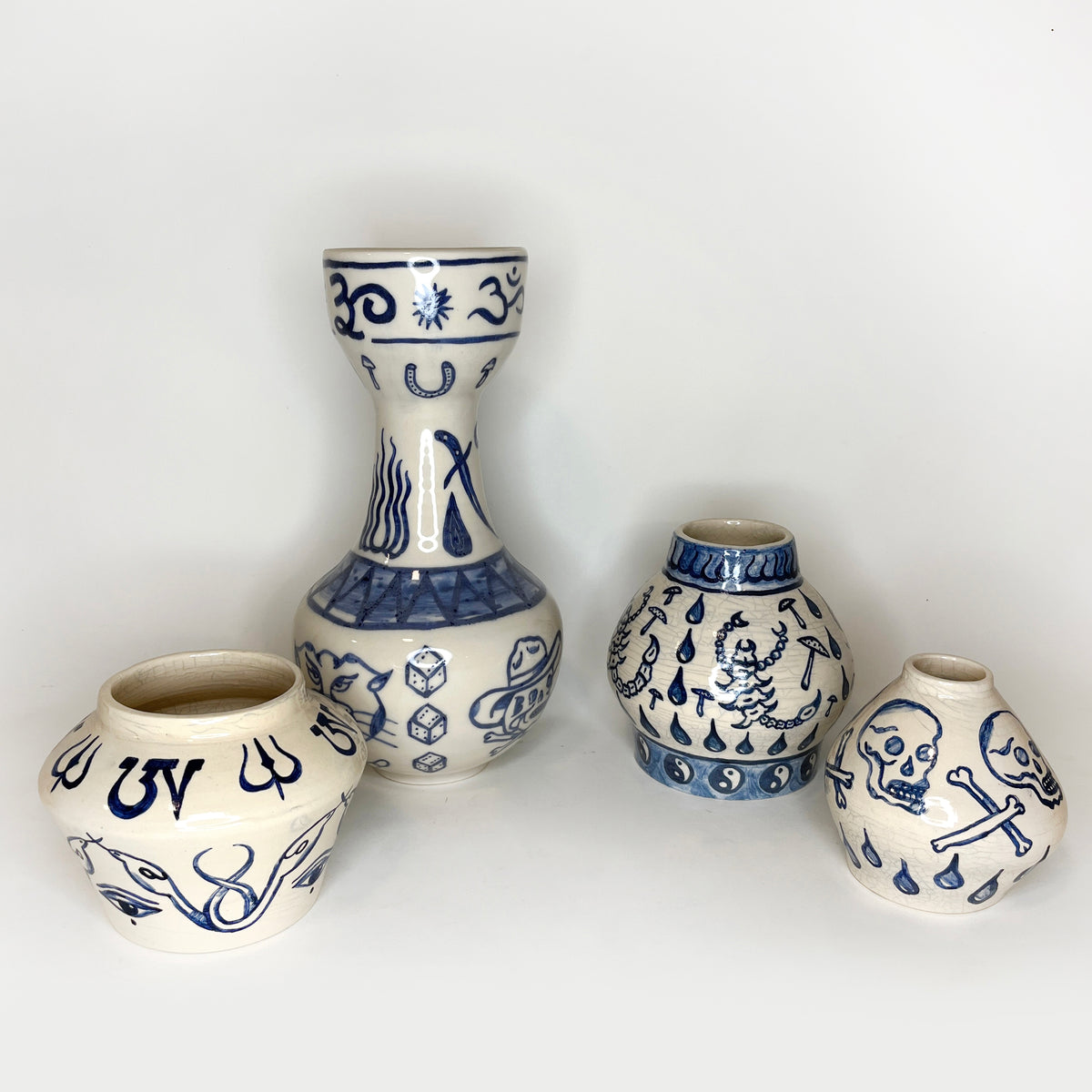 Set de cuatro jarrones que resume las cuatro etapas de la vida según la tradición del Yoga: Brahmacharya (estudiante), Gṛhastha (cabeza de familia), Vanaprastha (caminante del bosque/habitante del bosque) y Sannyasa (renunciante).