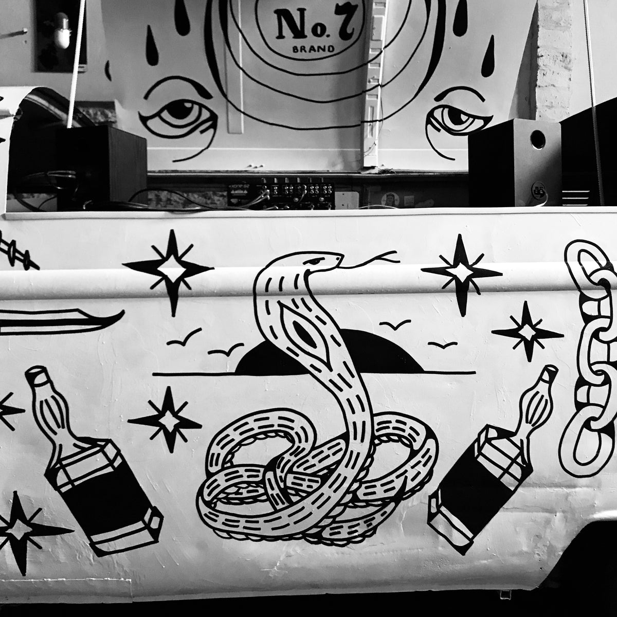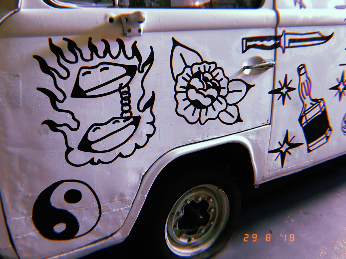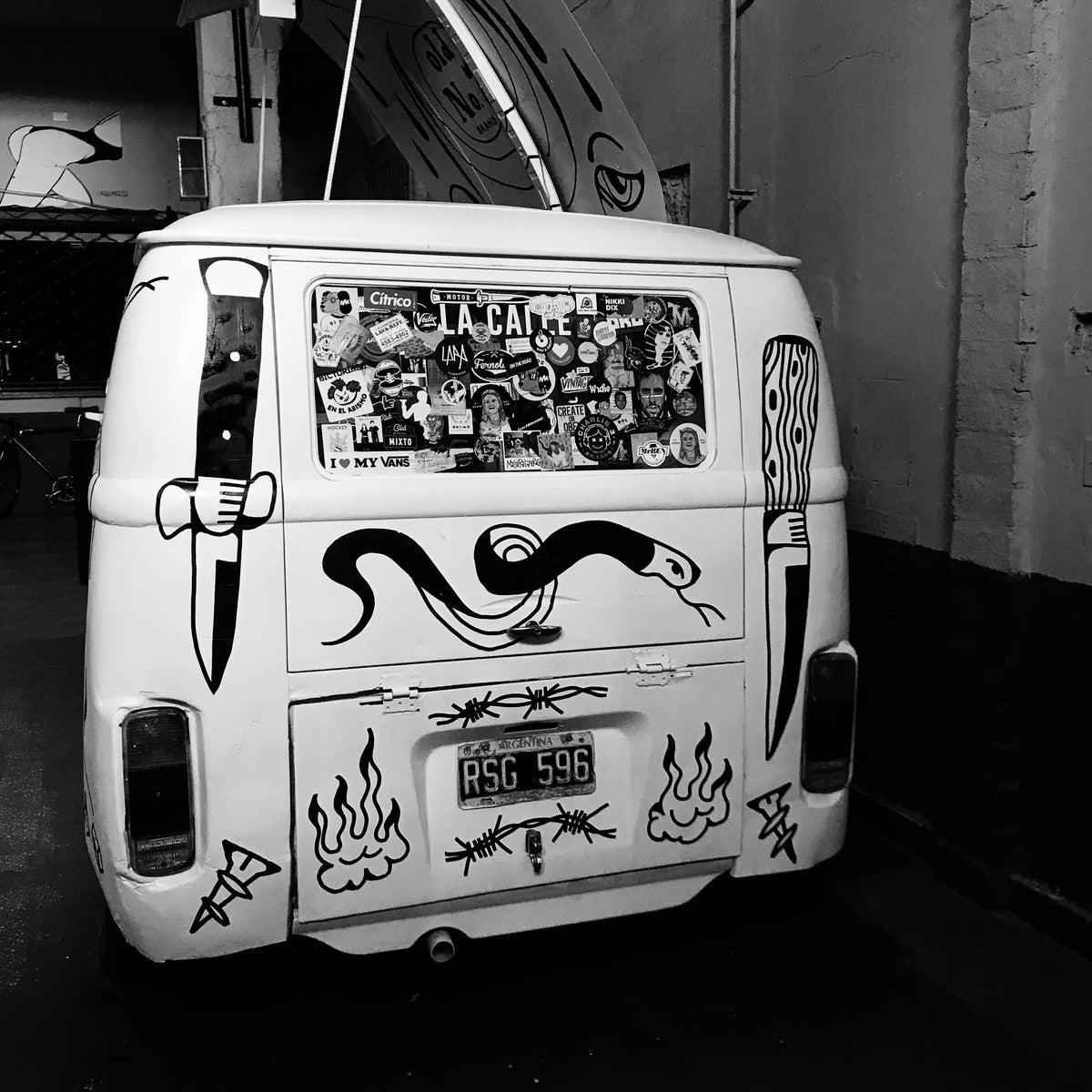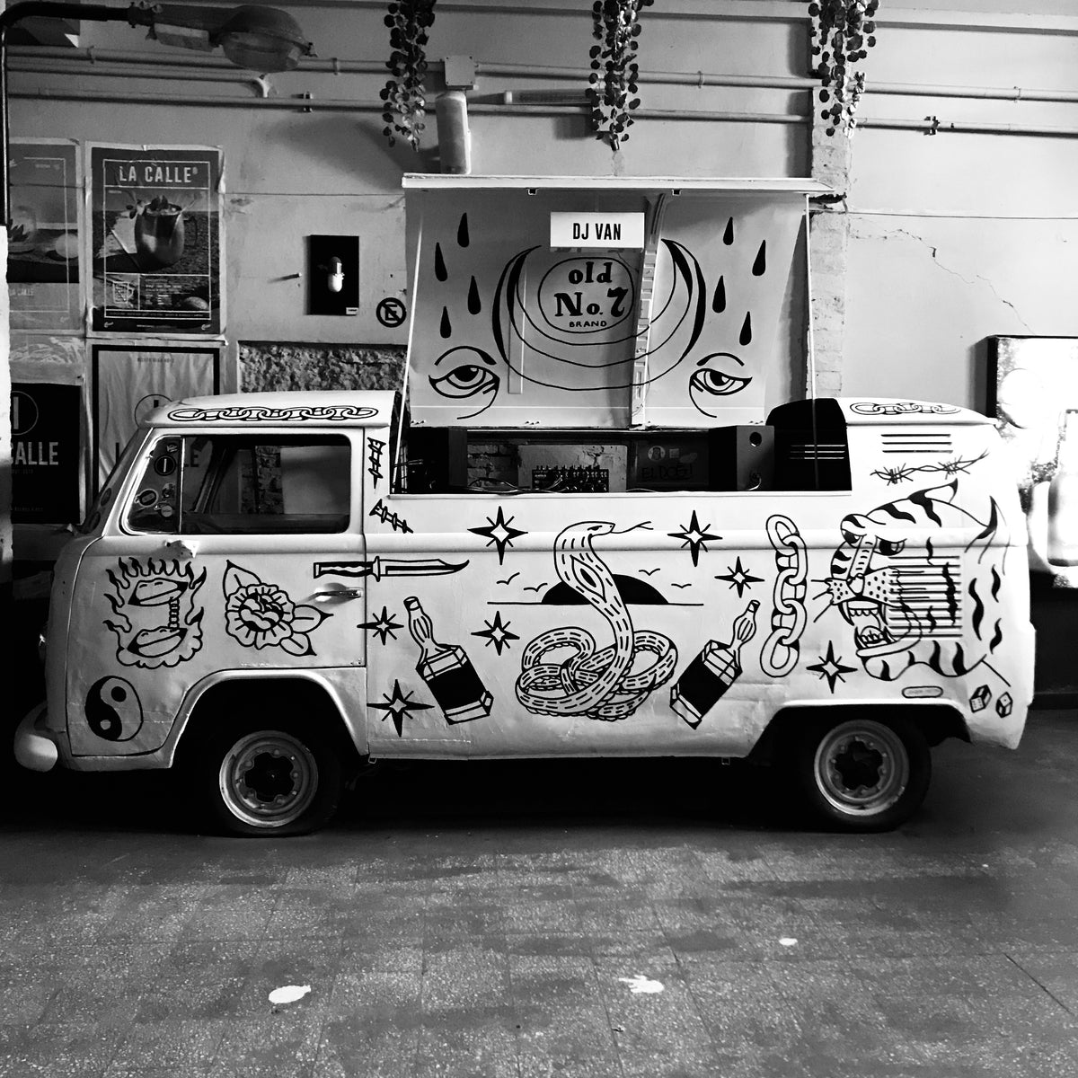 Una intervención mural sobre ruedas. Una van pintada por encargo para celebrar el segundo aniversario de La Calle Bar, en colaboración con Jack Daniel’s.