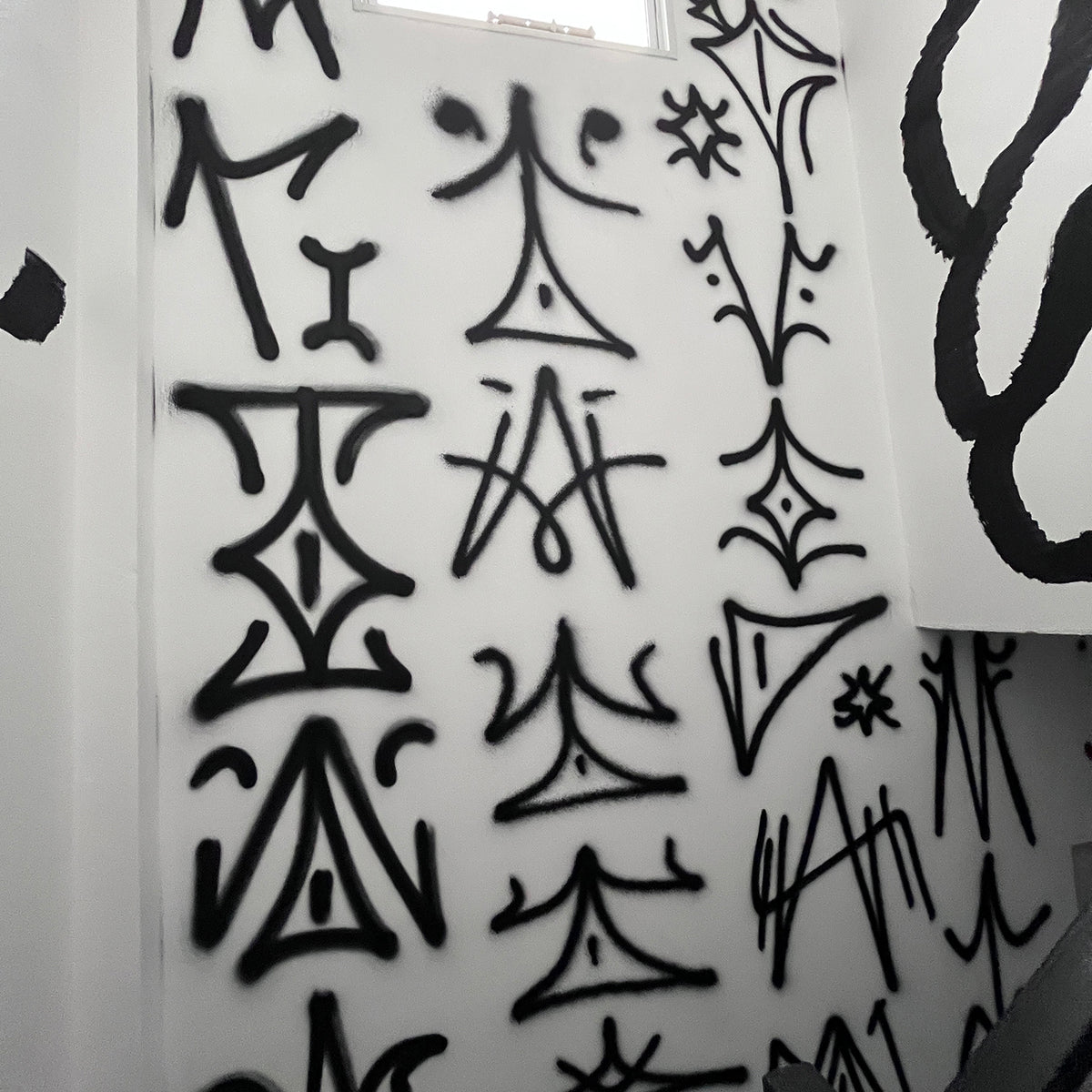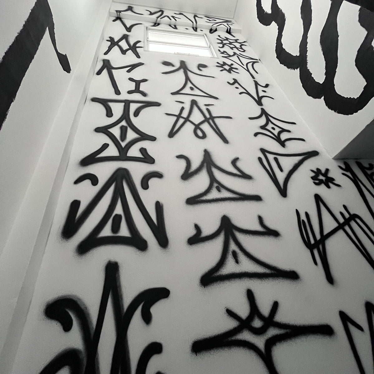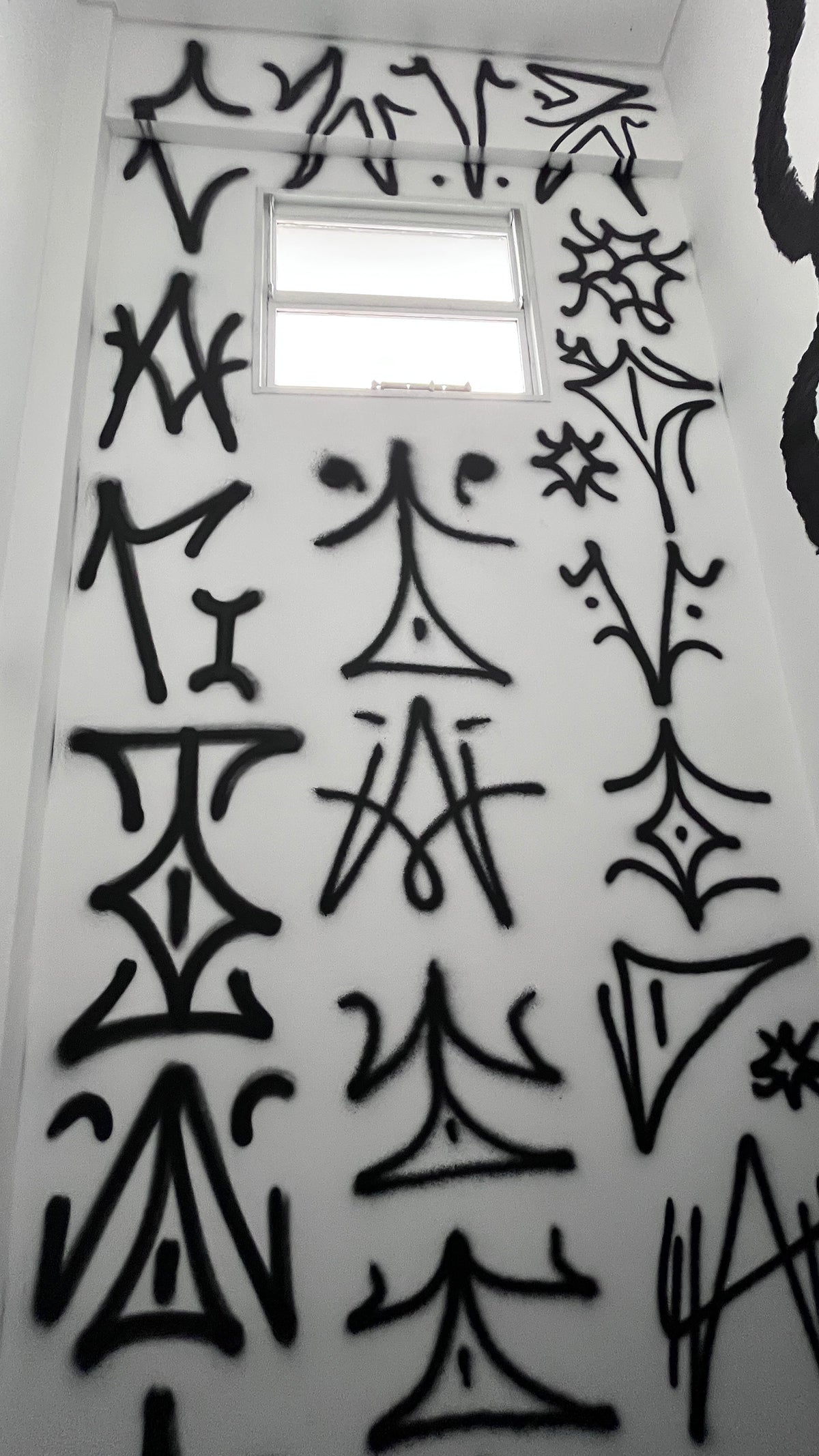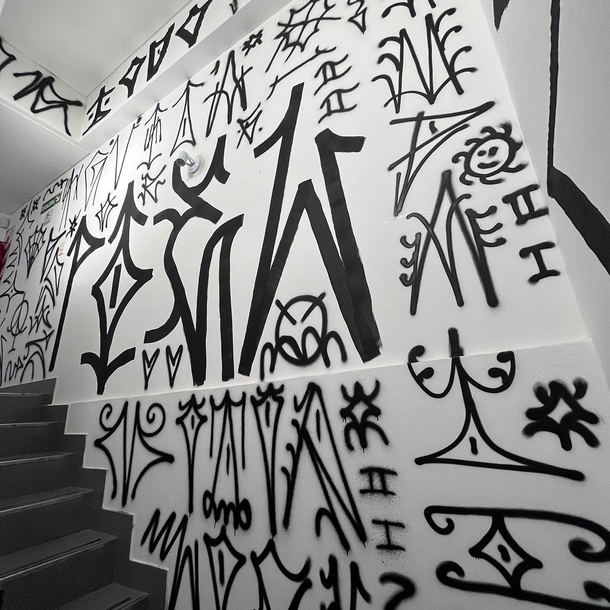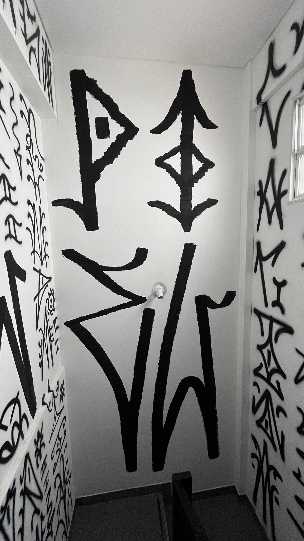 Marcado en la piel es un tatuaje en la pared que destaca los valores y cuidados de la piel a través del pixaçao.