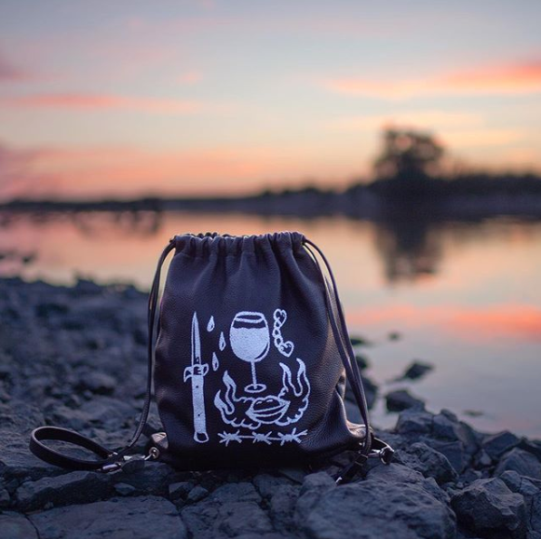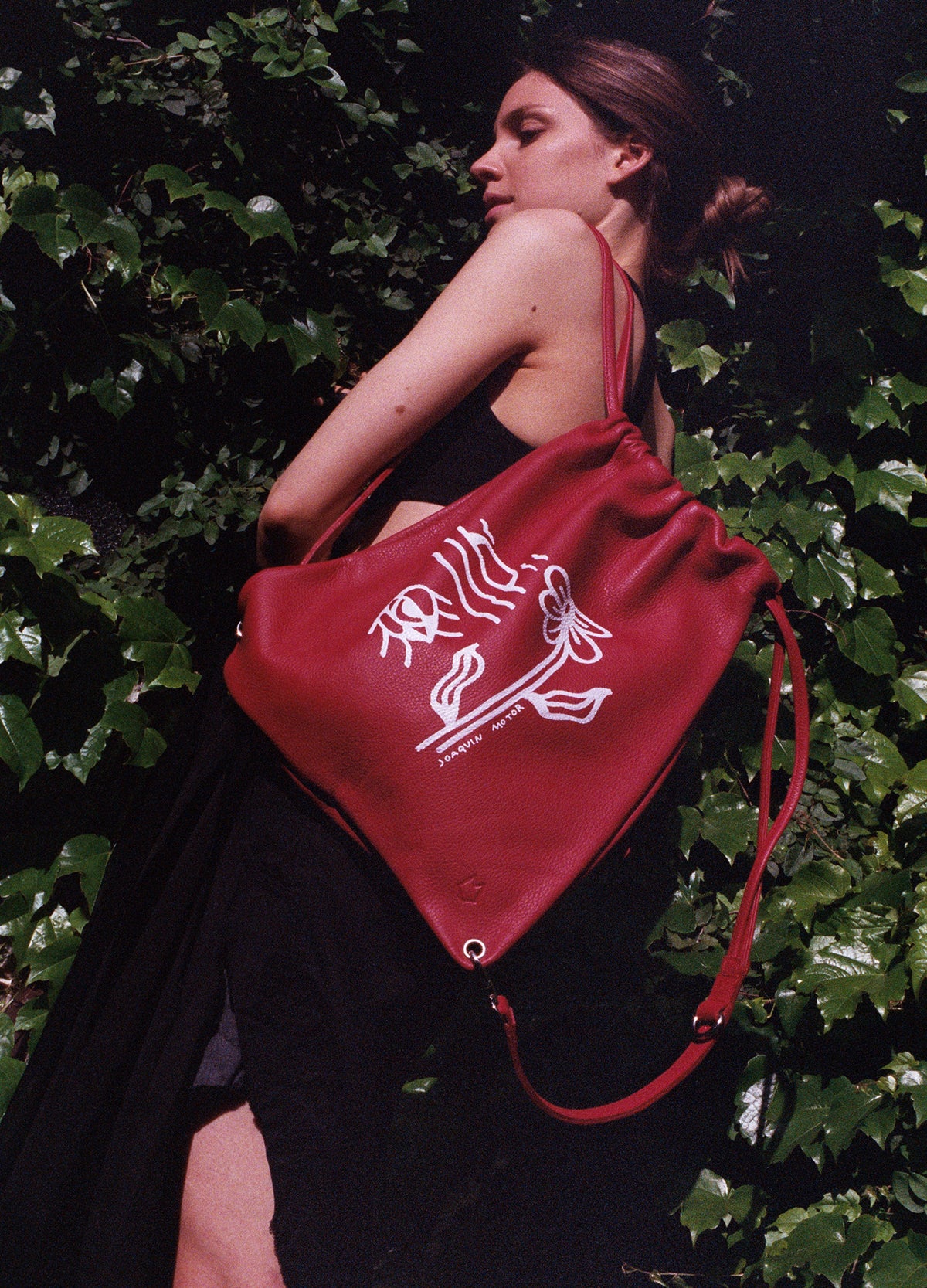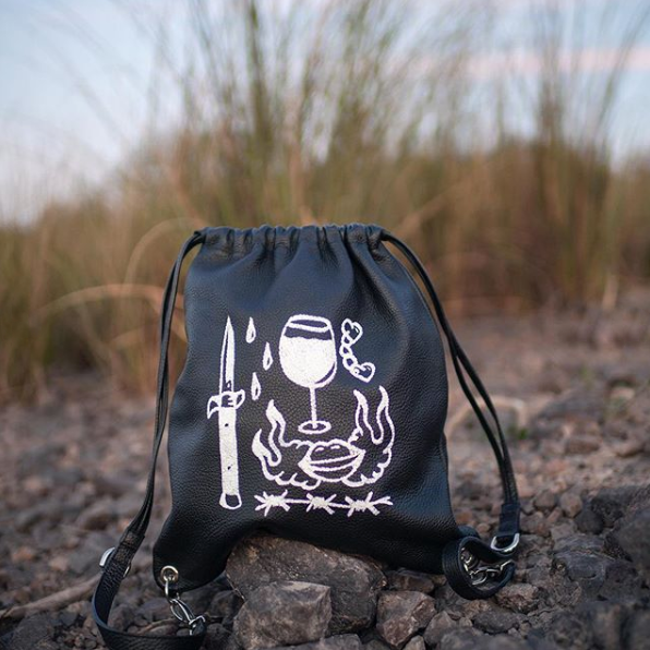 Cinco mochilas pintadas a mano, inspiradas en los ideales del Romanticismo: emoción, intuición y simbolismo dramático. Con flores, corazones atravesados, cuchillos, ojos, lunas y copas de vino, cada ilustración queda marcada sobre la piel de cada bolso como un universo emocional.