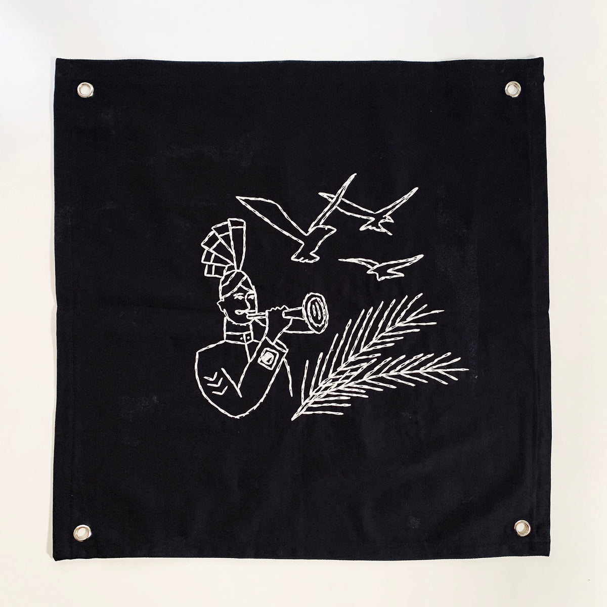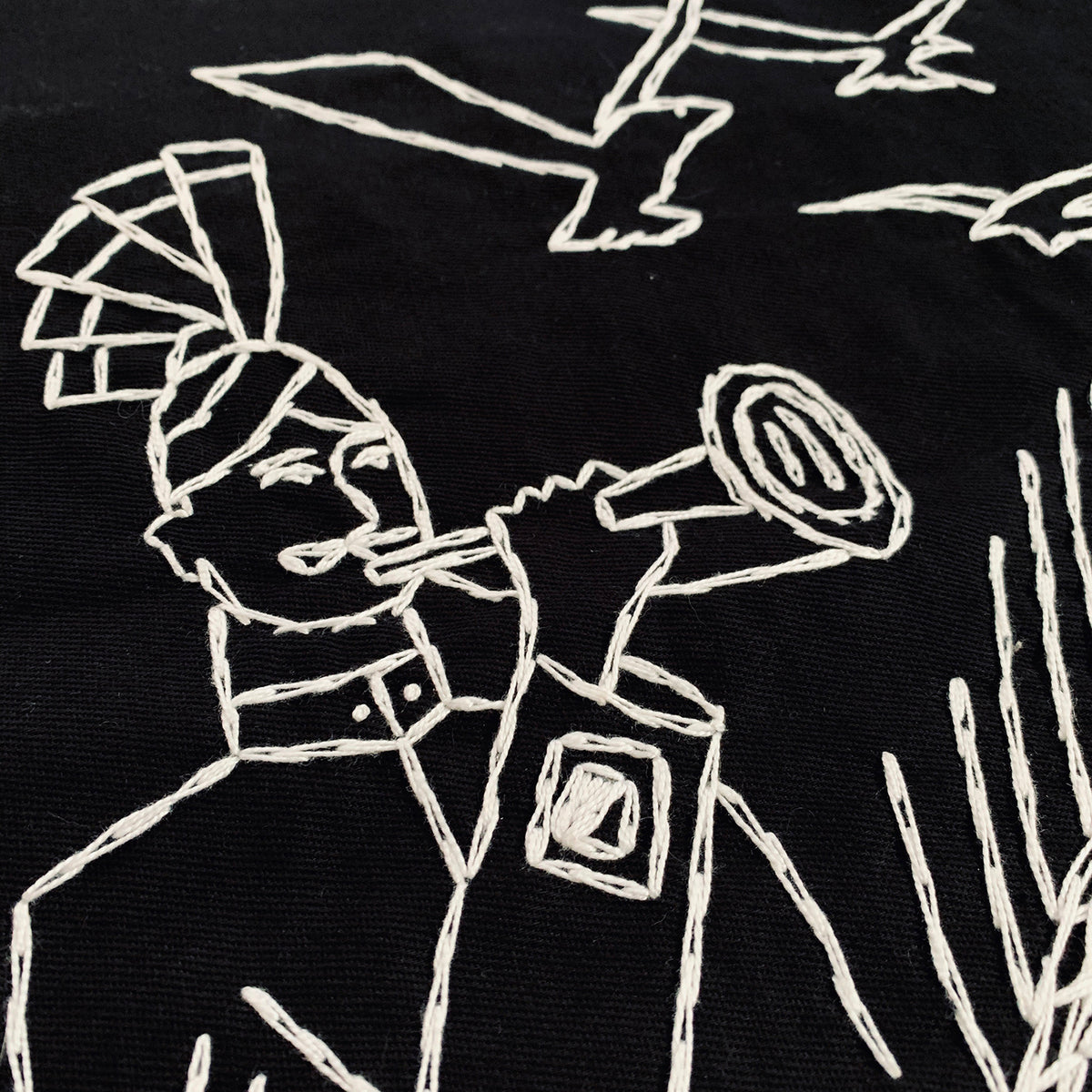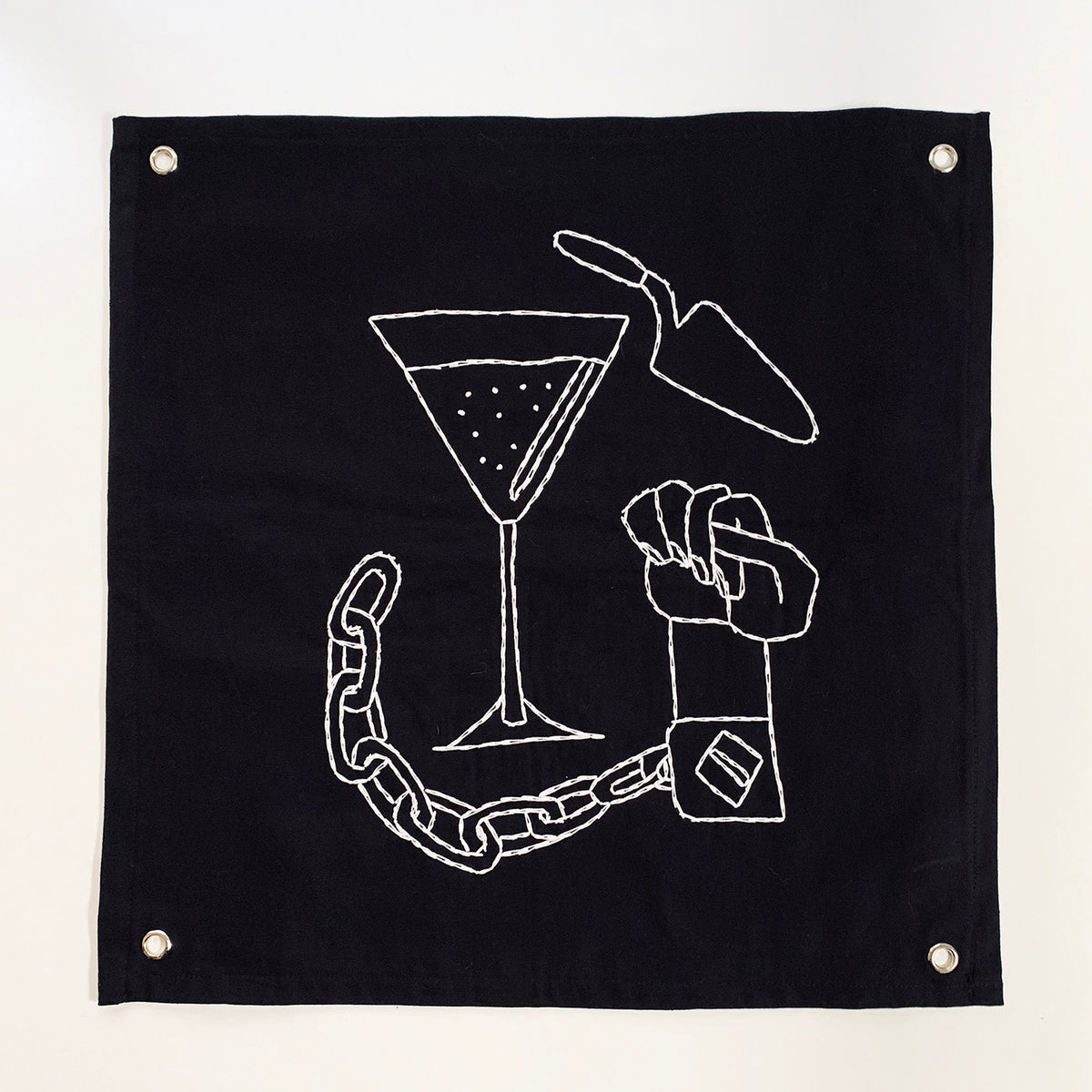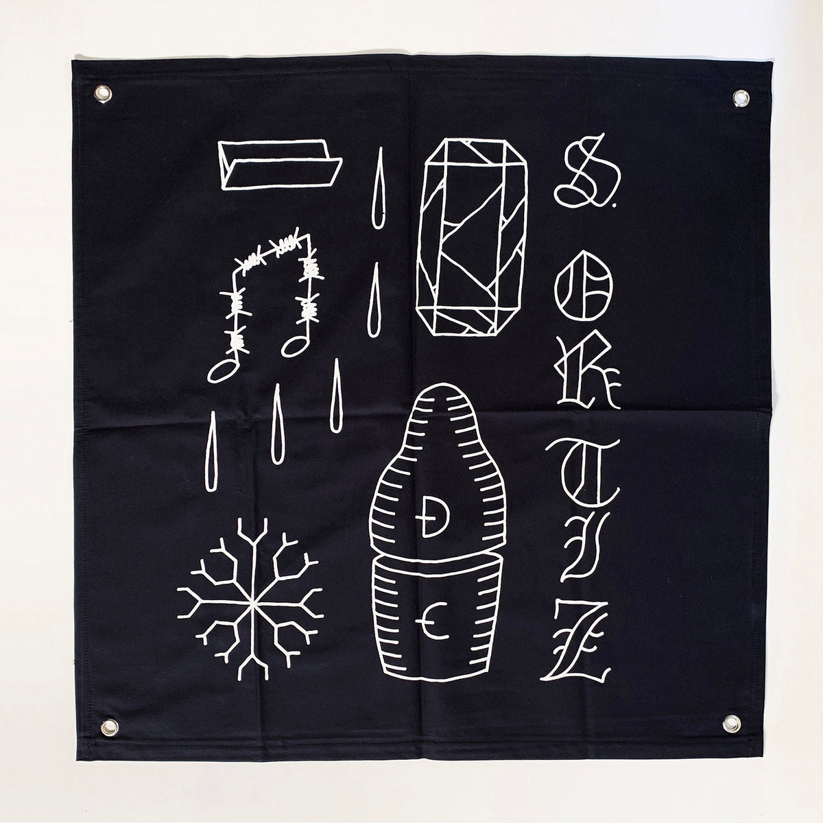 Sociedad De Trabajo Forzoso es un conjunto de 25 sedas negras bordadas que honran el trabajo de los archivos de Baldaev. Con la seda como piel y el hilo como tinta, este conjunto de banderas refleja recuerdos imaginarios y pensamientos de libertad en las mentes de los reclusos.