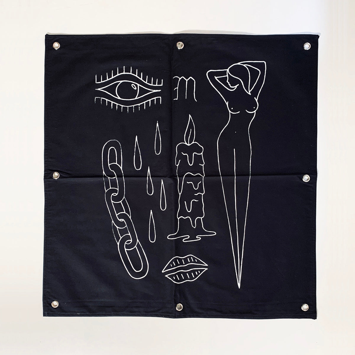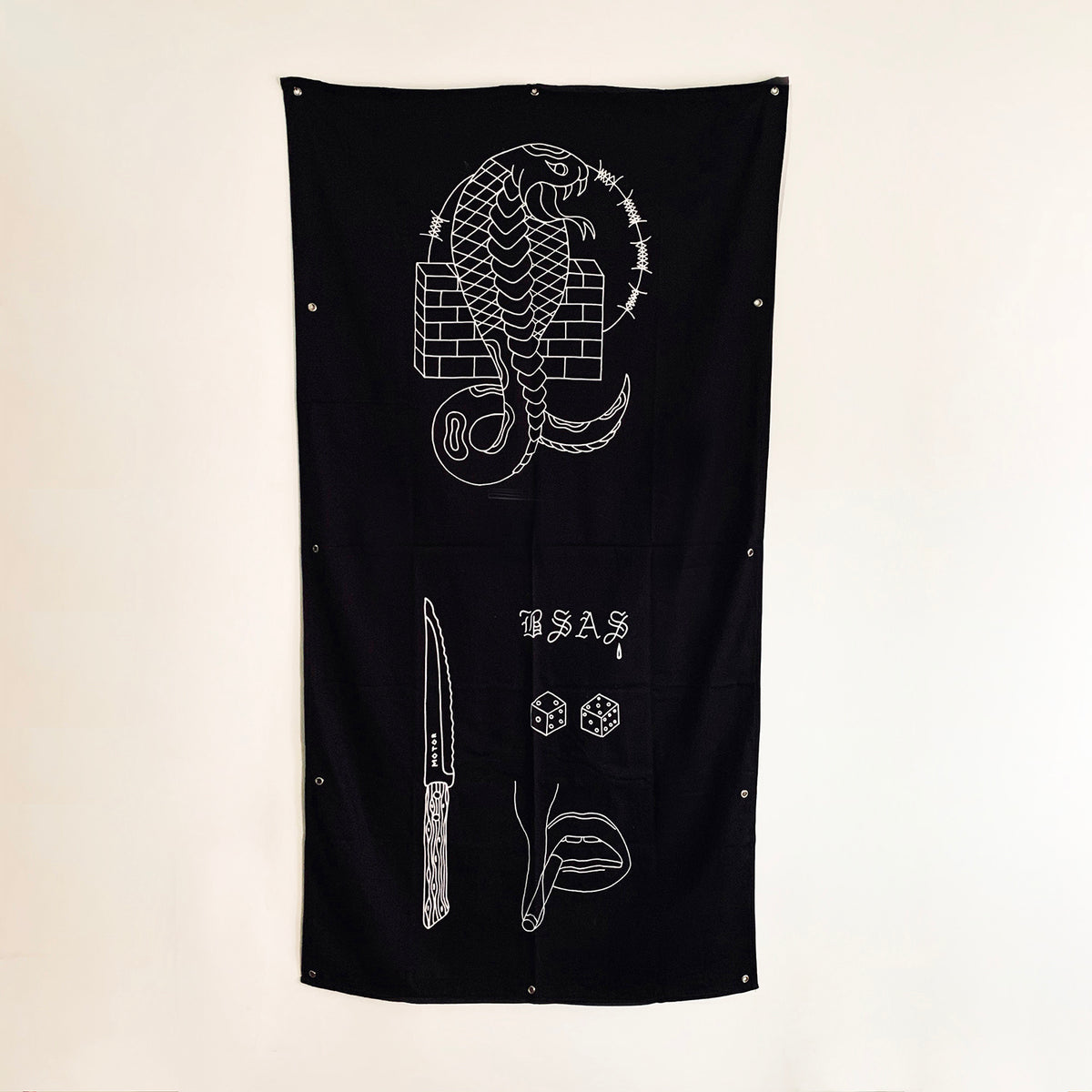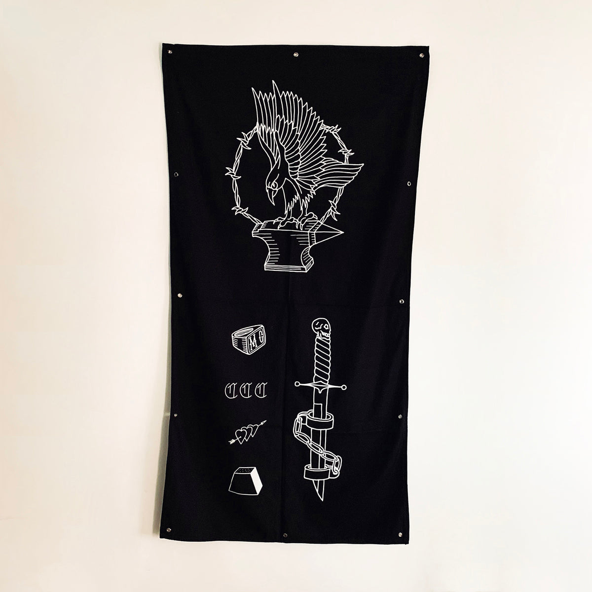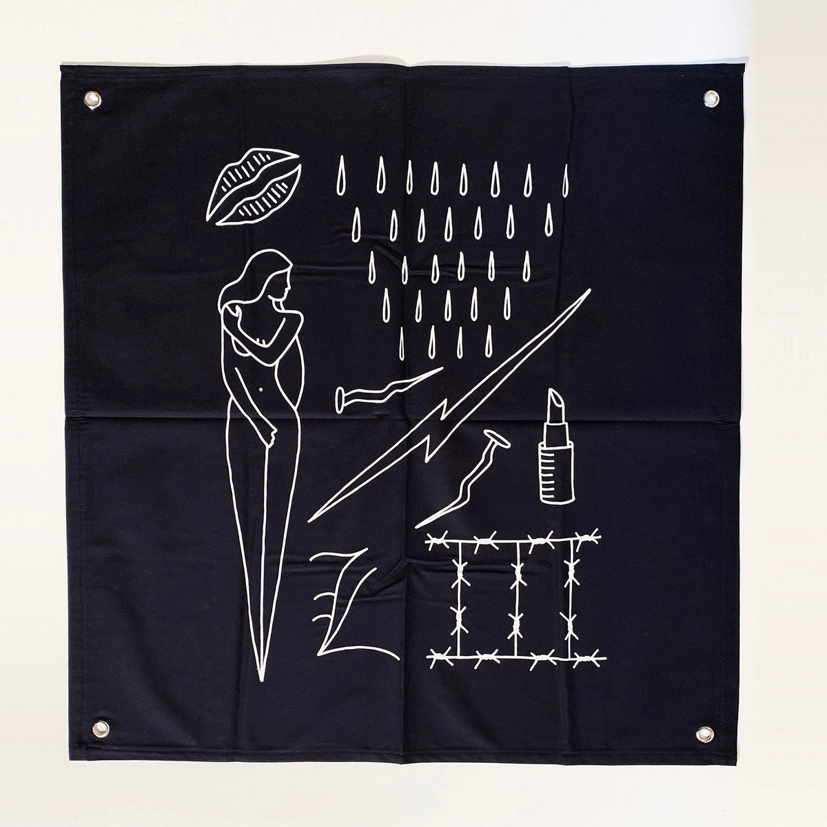 Sociedad De Trabajo Forzoso es un conjunto de 25 sedas negras bordadas que honran el trabajo de los archivos de Baldaev. Con la seda como piel y el hilo como tinta, este conjunto de banderas refleja recuerdos imaginarios y pensamientos de libertad en las mentes de los reclusos.