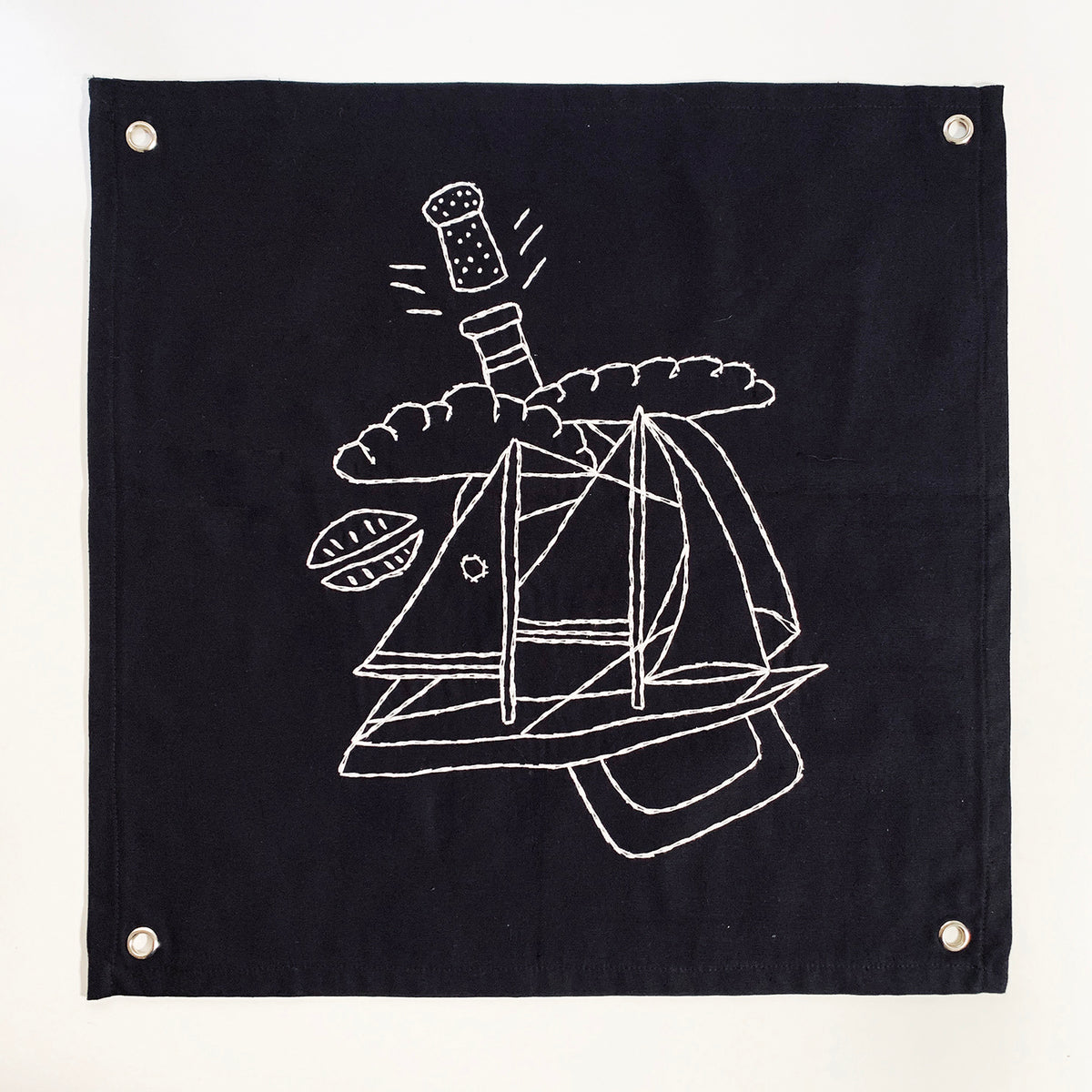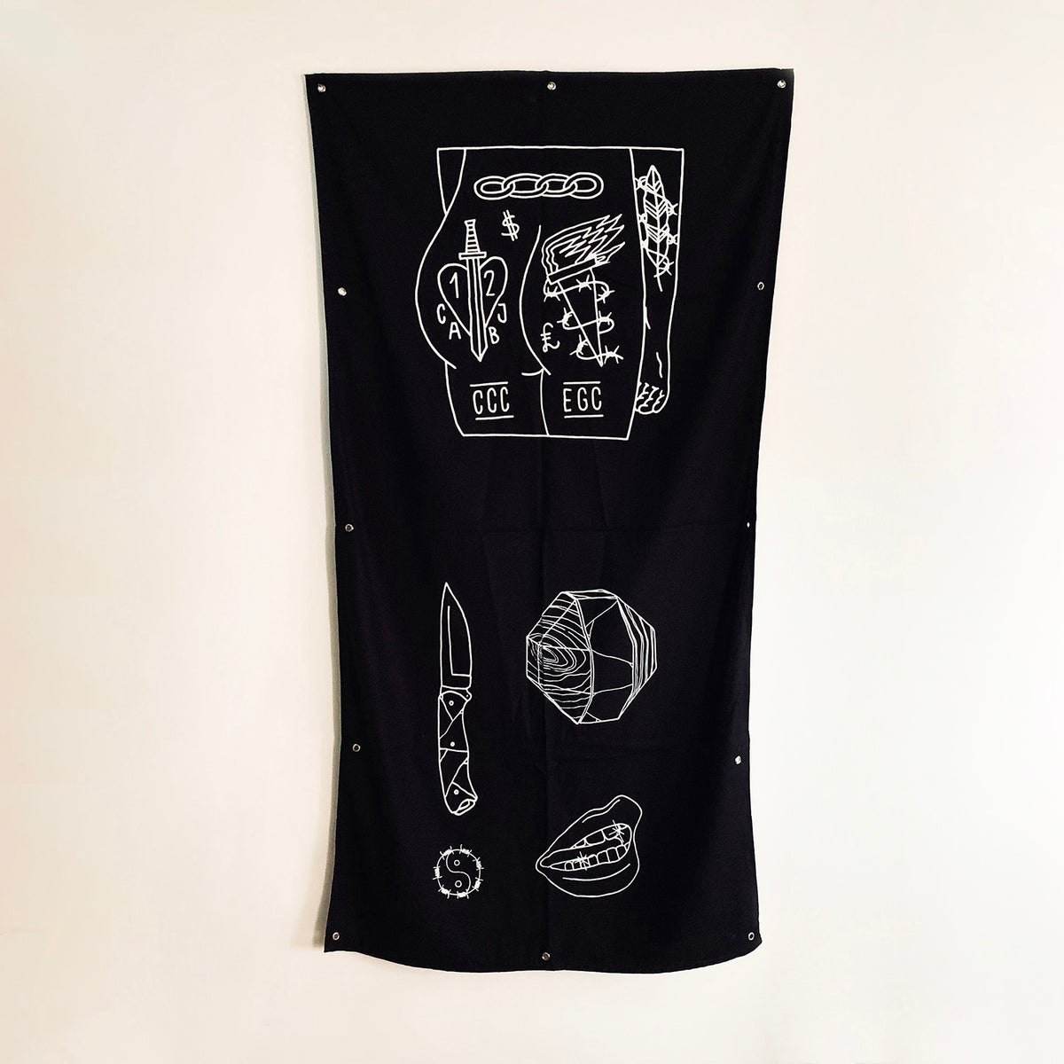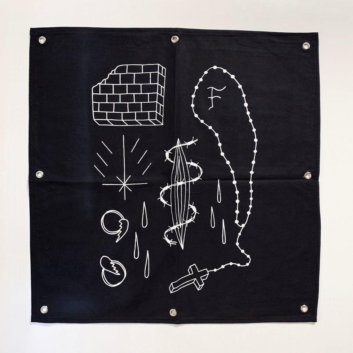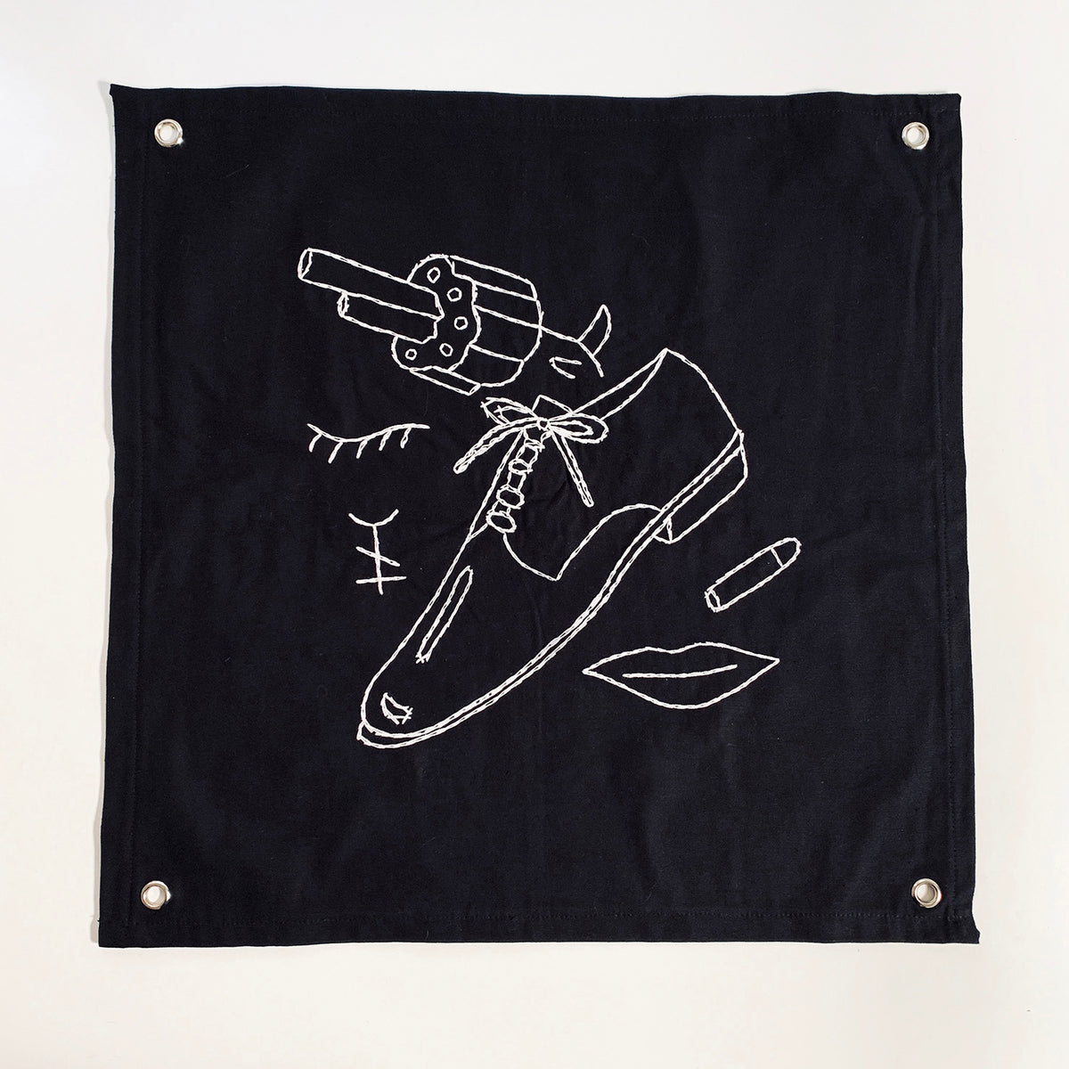 Sociedad De Trabajo Forzoso es un conjunto de 25 sedas negras bordadas que honran el trabajo de los archivos de Baldaev. Con la seda como piel y el hilo como tinta, este conjunto de banderas refleja recuerdos imaginarios y pensamientos de libertad en las mentes de los reclusos.