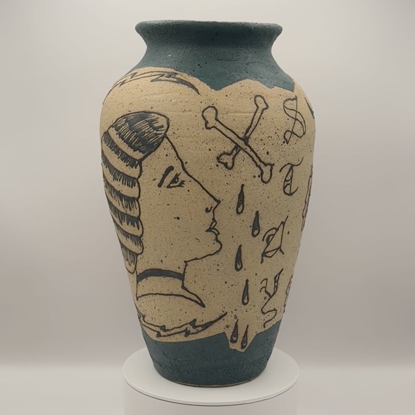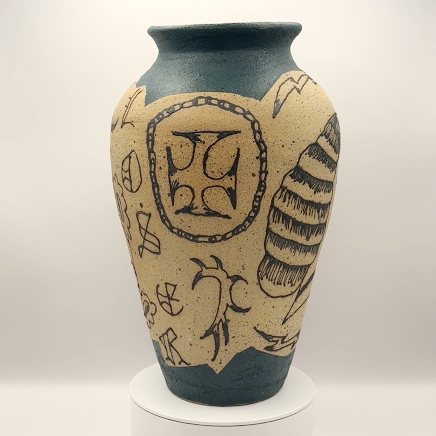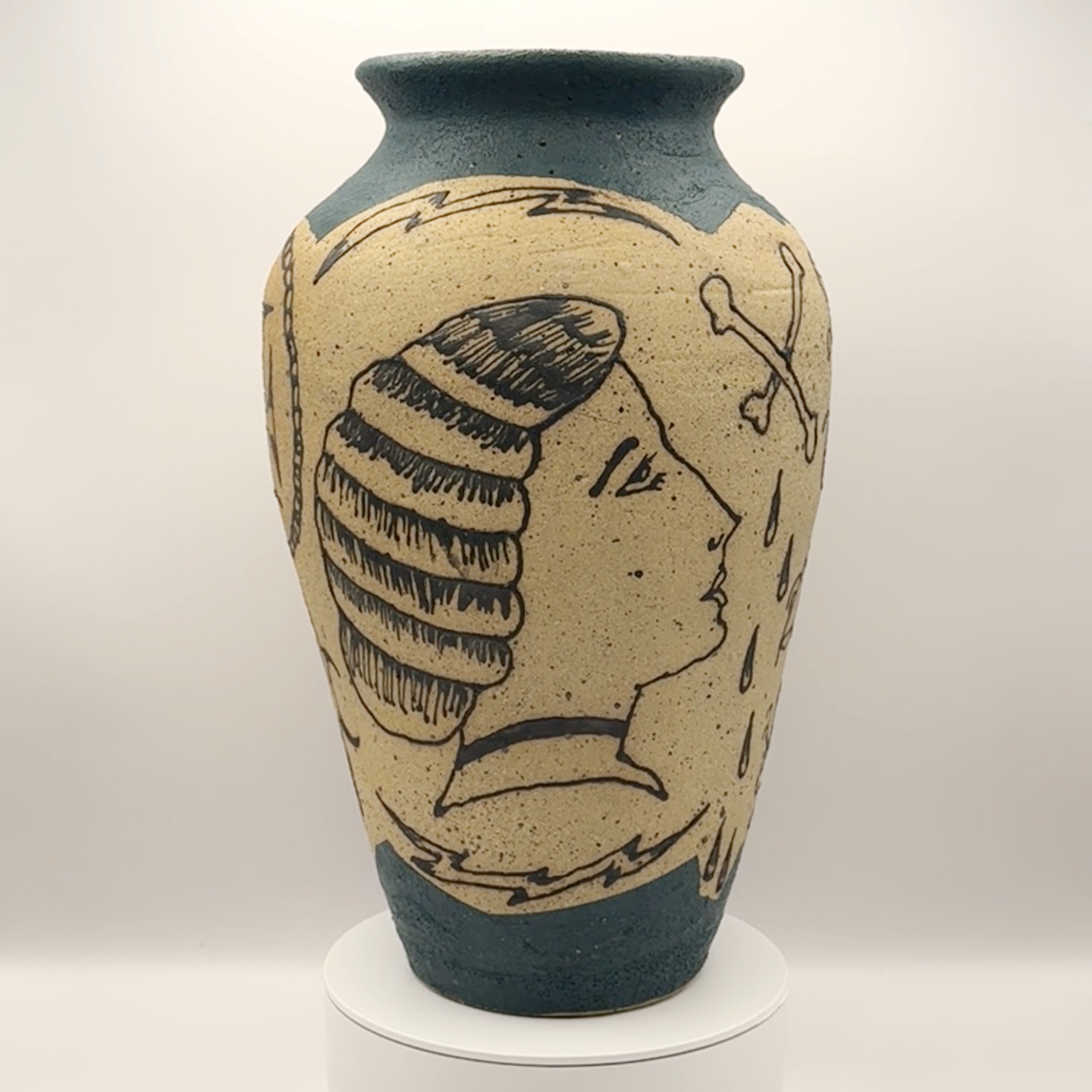 Jarrón de cerámica hecho a mano, pintado y esmaltado a mano.